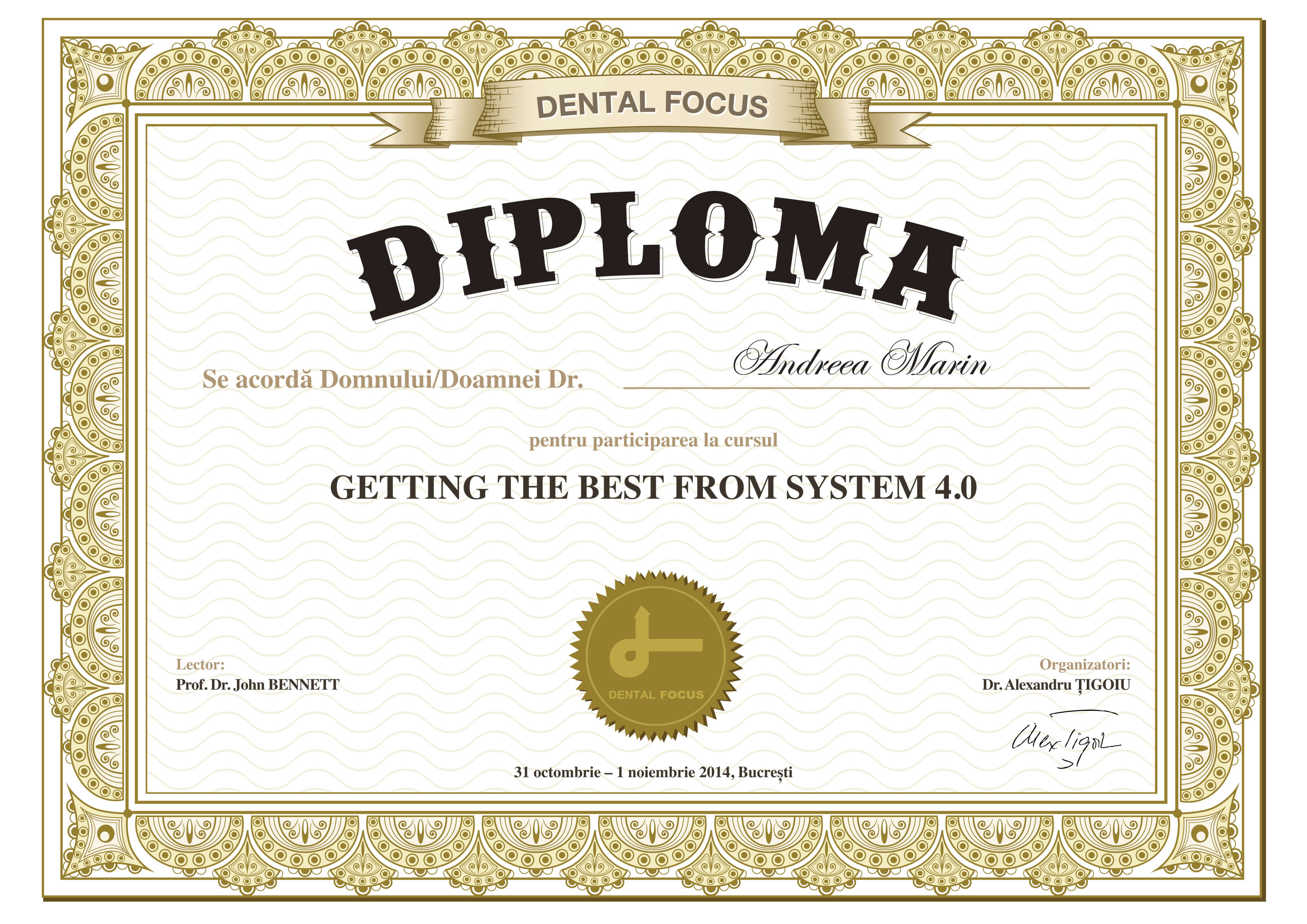 - Noiembrie 2015 - Prof. Dr. Enzo Pasciuti - Programul de 2 ani pentru perfectionare in tehnica Straight-Wire - "From diagnosis to treatment plan"