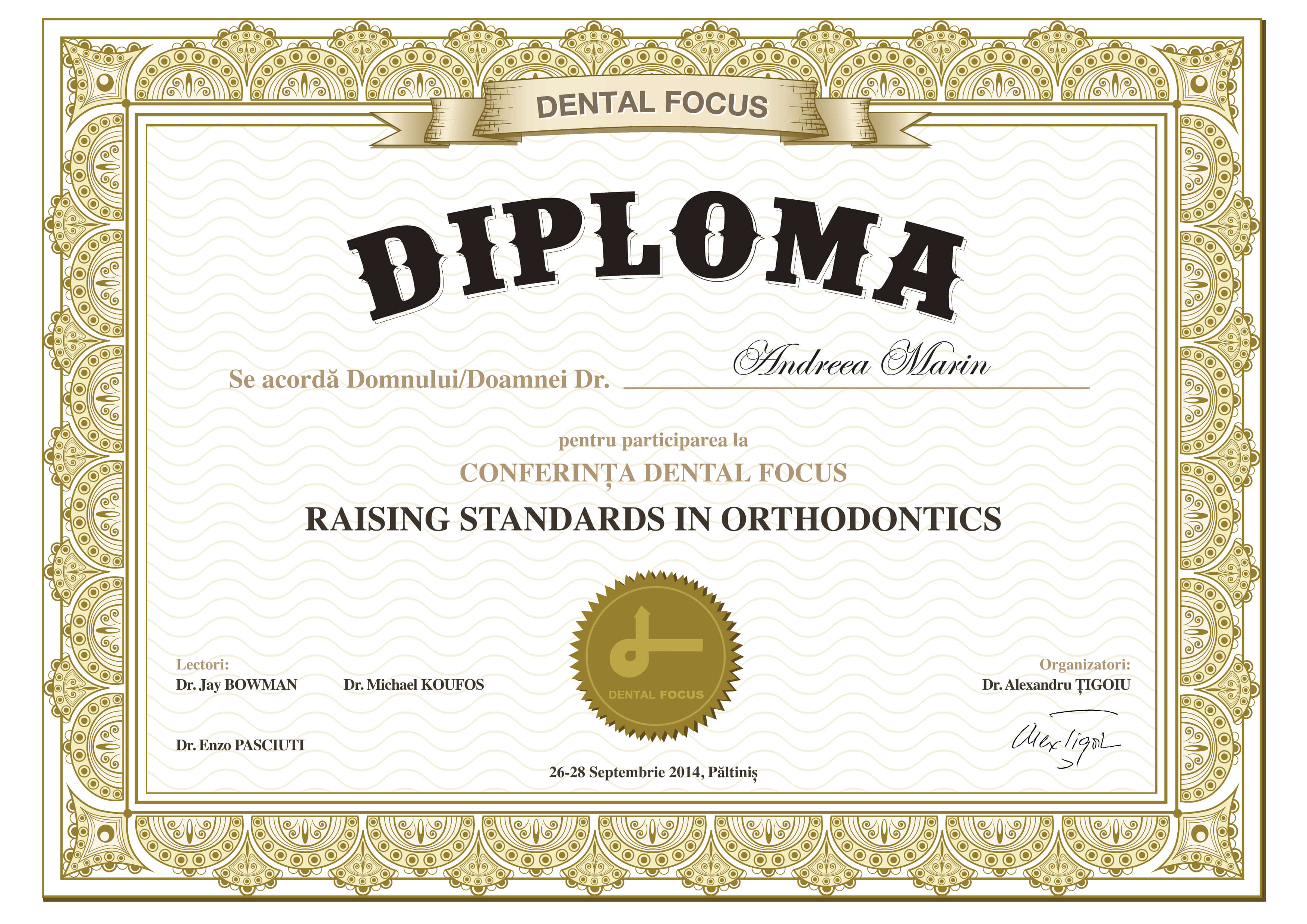 - Septembrie 2014 - Prof. Dr. Jay Bawman, Prof. Dr. Michael Koufos, Prof. Dr. Enzo Pasciuti ‐ ”Raising Standards in Orthodontics”