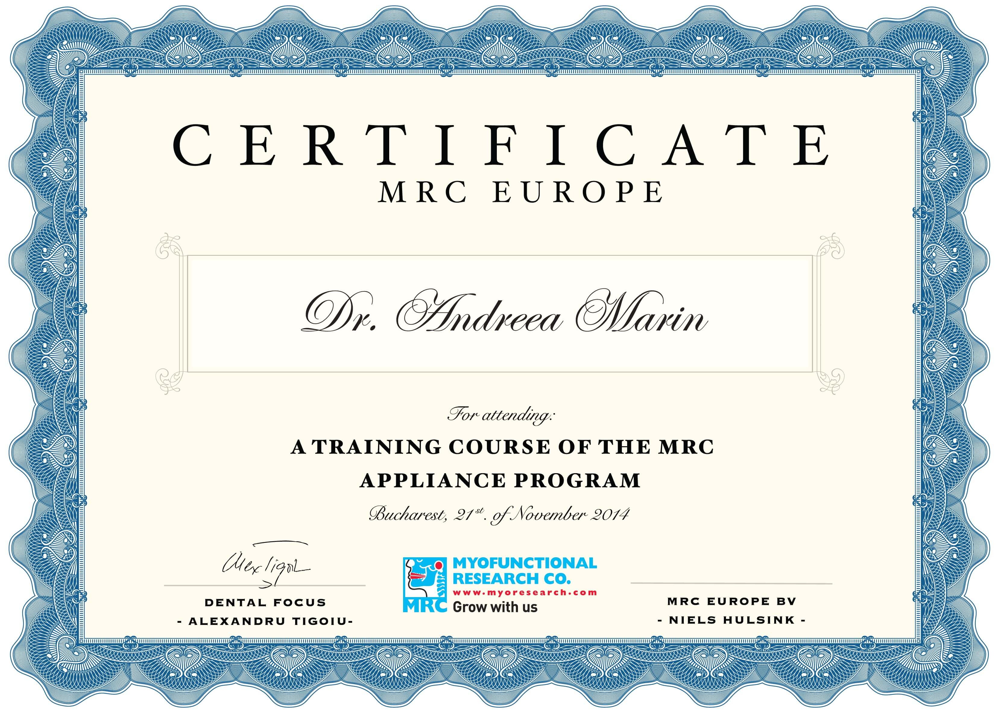 - Noiembrie 2014 - Certificare MRC Europe