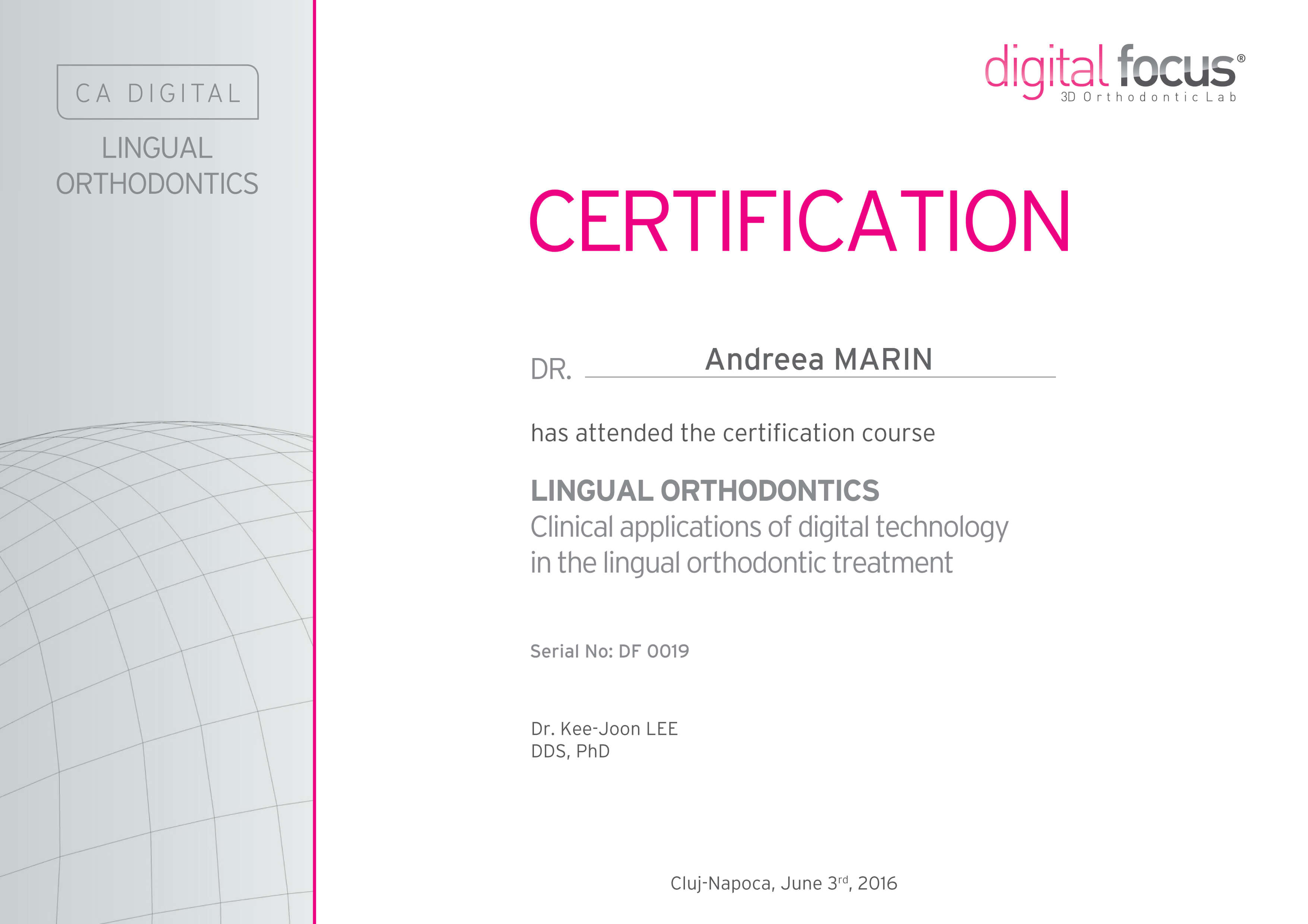 - Iunie 2016 - Prof. Dr. Kee Joon Lee - Certificare in ortodontia linguala