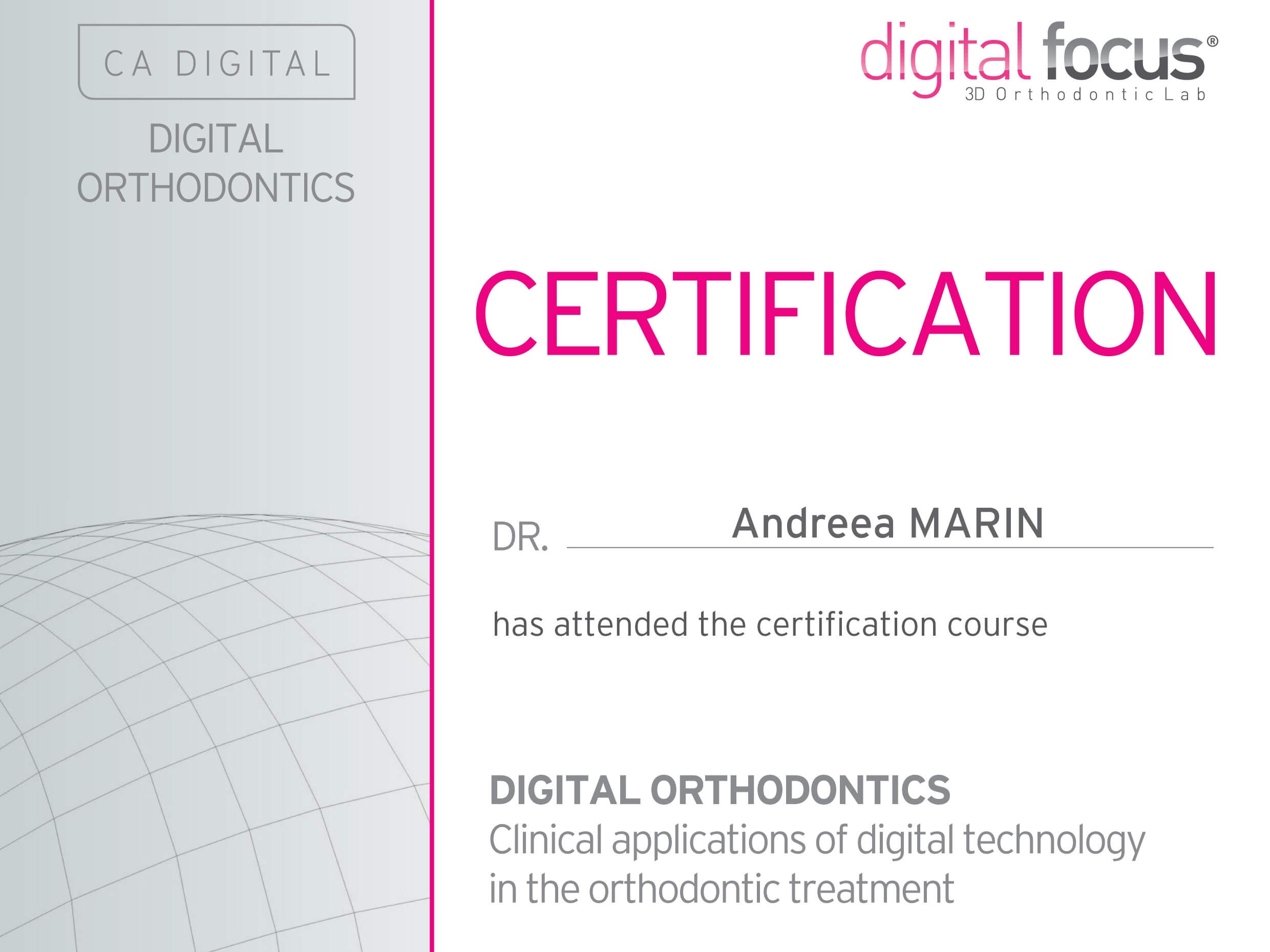 - Iunie 2016 - Dr. Pascal Schumacher - Certificare in ortodontia digitala