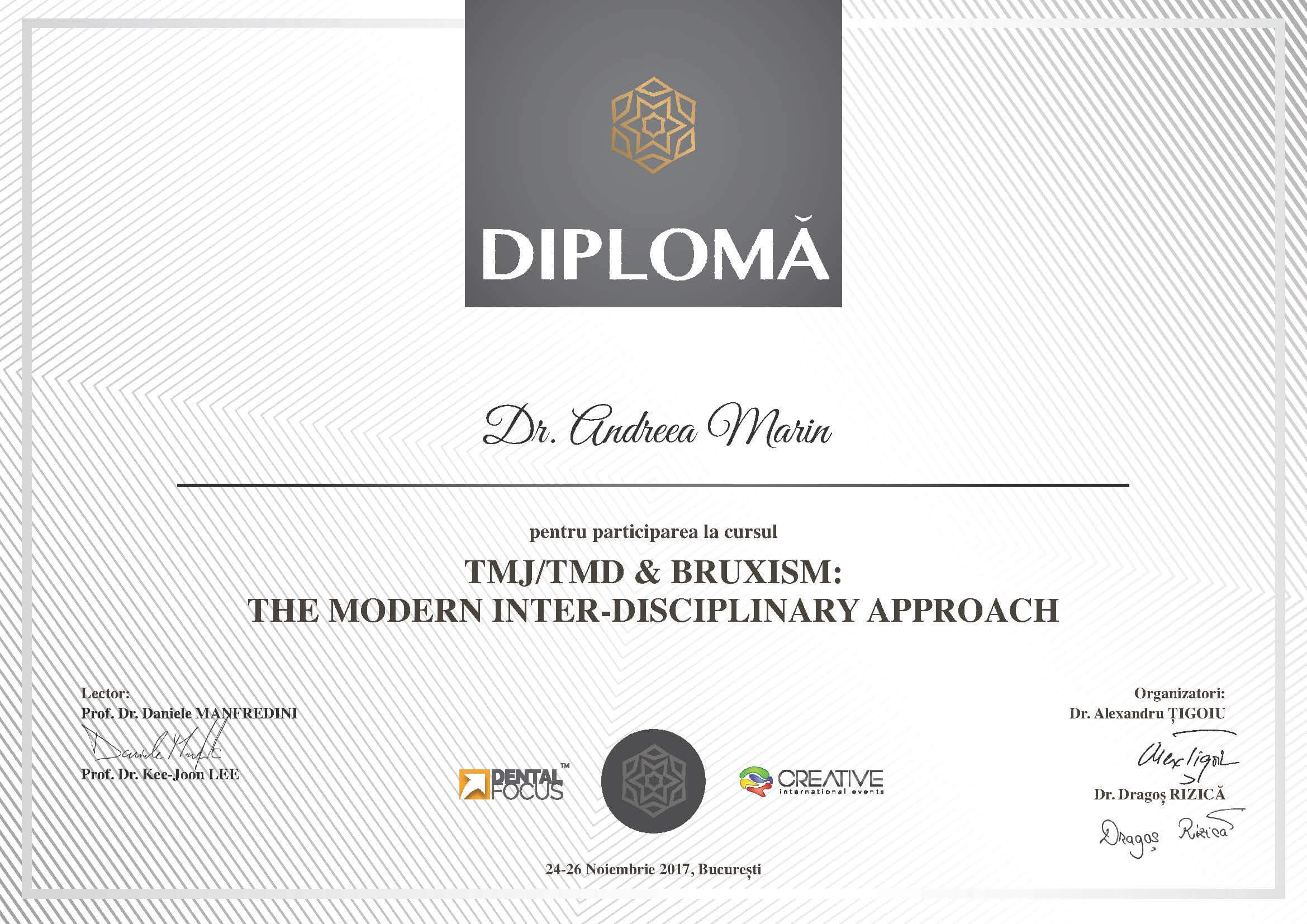 - Noiembrie 2017 - Dr. Daniele Manfredini, Dr. Kee-Joon Lee - "TMJ/TMD & Bruxism: The modern inter-disciplinary approach"