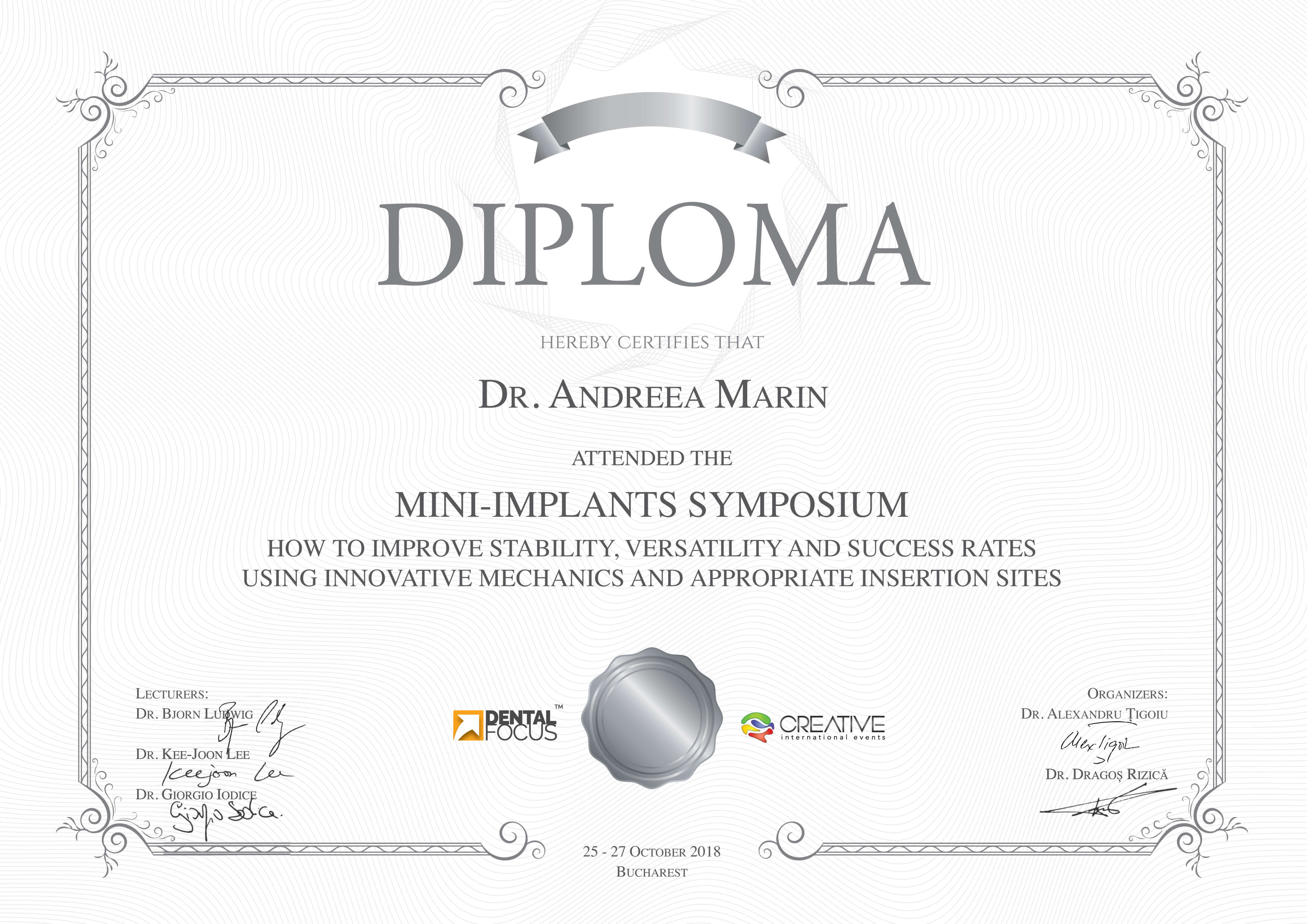 - Octombrie 2018 - Dr. Bjorn Ludwig, Dr. Giorgio Iodice, Dr. Kee-Joon Lee - “Mini-Implants Symposium”
