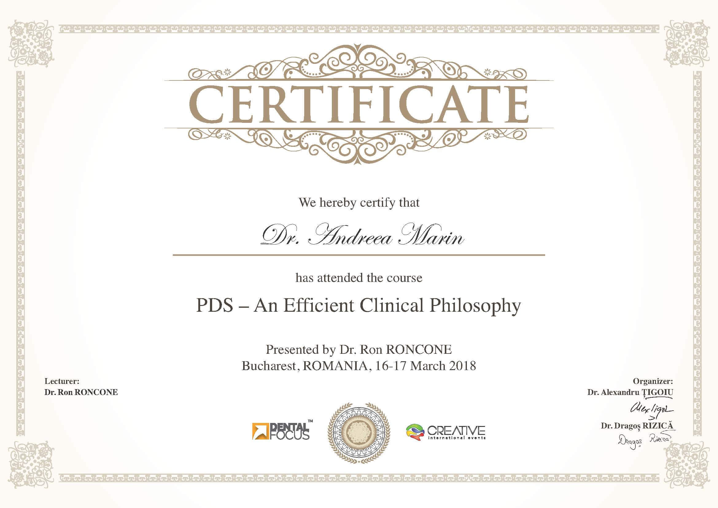 - Martie 2018 - Dr. Ron Roncone - "Self Ligation - PDS - An Efficient Clinical Philosophy"