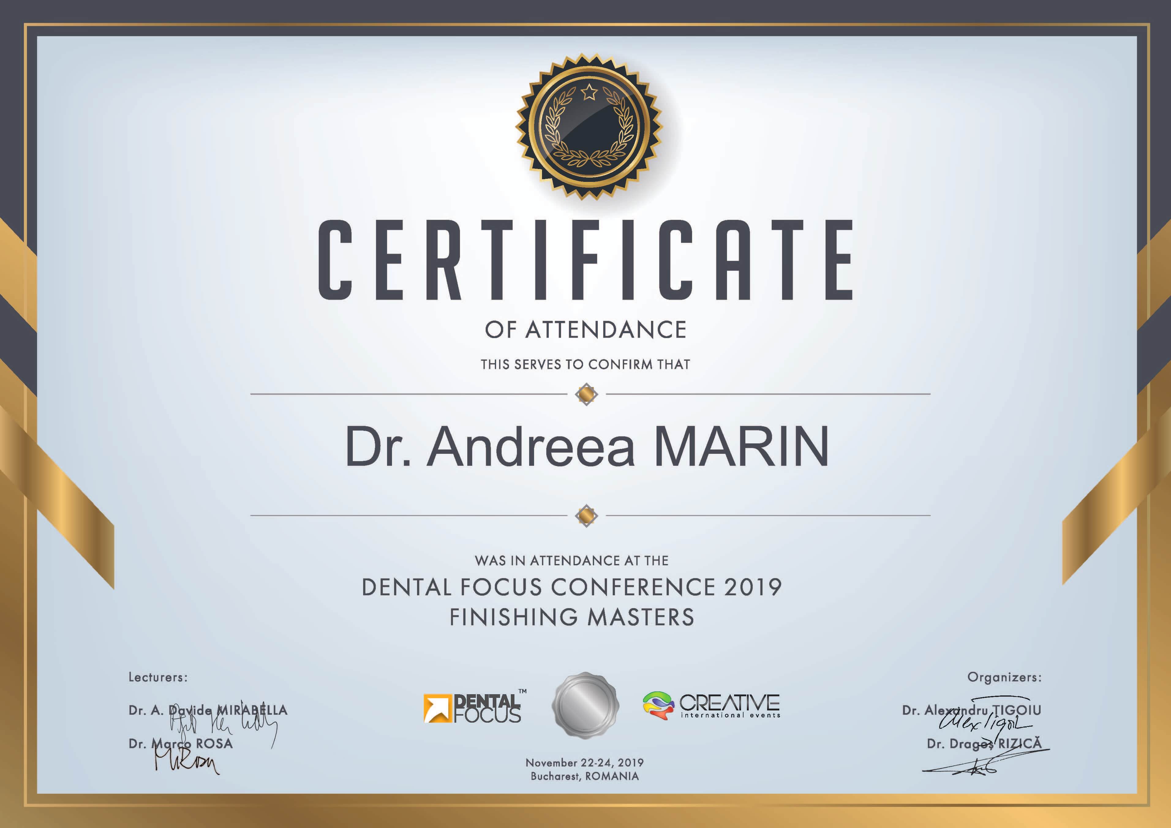 - Noiembrie 2019 - Dr. Davide Mirabella, Dr. Marco Rosa - “Finishing Masters Conference”